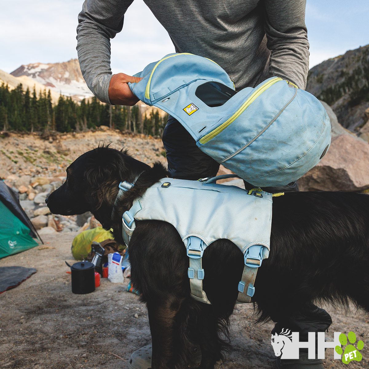 • Transporte estable del equipo: las alforjas con corte radial y peso hacia delante y los «flopper stoppers» mantienen la mochila y su contenido estables contra tu perro.