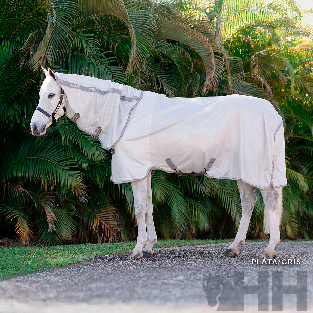 Manta realizada en poliéster ultra transpirable para proteger al caballo de todo tipo de insectos. Incorpora capucha para el cuello y el sistema patentado de diseño en arco para la posición de las manos del caballo y que éste pueda moverse con total libertad. Colores brillantes con propiedades que reflejan el sol, además de una divertida opción de estampado de libélulas.