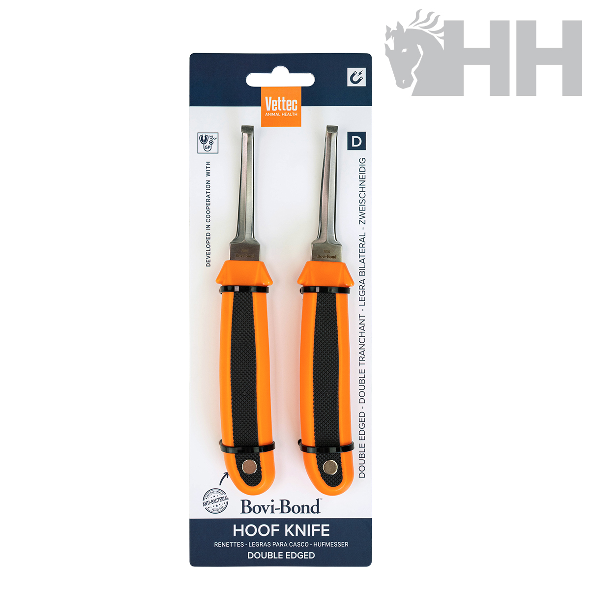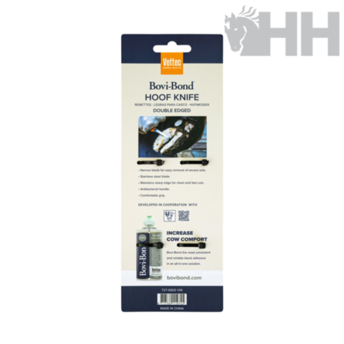 Esta legra para pezuñas Bovi-Bond de doble filo está diseñada para el tratamiento de pezuñas bovinas.